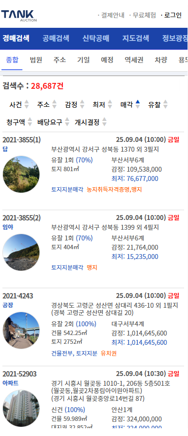 탱크옥션 경·공매 물건을 찾아갈때.. |