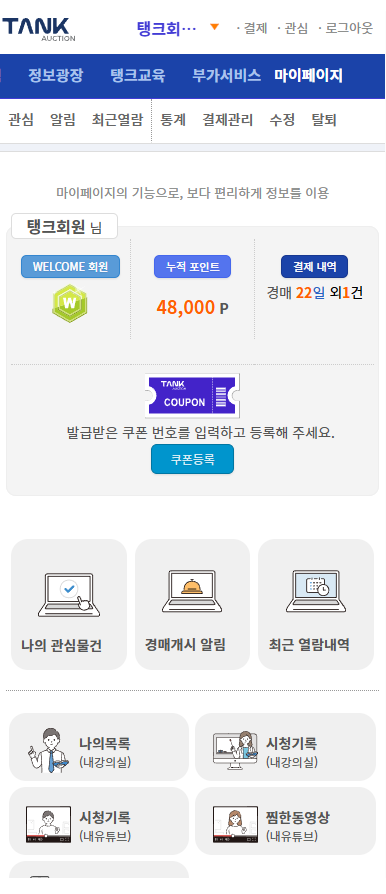 | 모바일 웹 주소: m.tankauction.com |