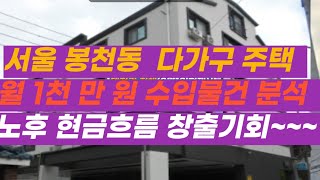 서울 봉천동 다가구 1천만 수익 가능 물건 분석